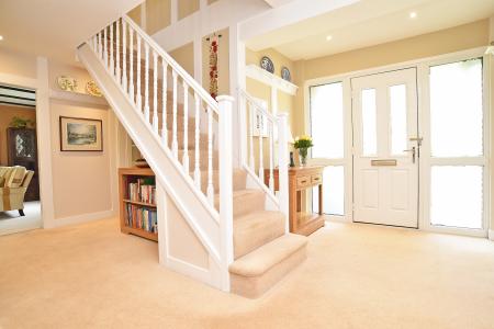 This excellent home is presented to a good standard and provides generous and flexible accommodation with a reception hall and large cloaks cupboard, spacious sitting room with open fire, separate dining room, study, well-equipped kitchen and an additional family room with door leading to the garden. There is also a useful utility room and downstairs WC. Upstairs, there are four good-sized bedrooms, a bathroom and en-suite shower room.