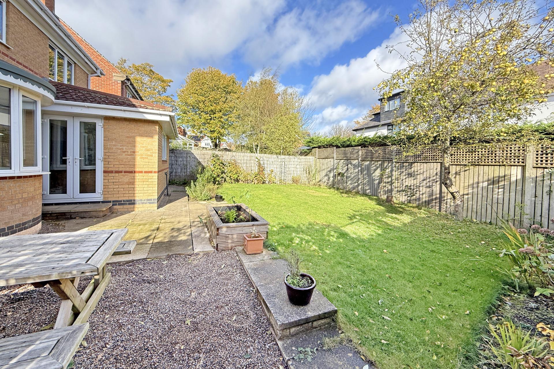 Outside, the property enjoys a large private driveway, double garage, and a well-maintained lawned garden offering a high degree of privacy with mature planted borders and paved sitting area.