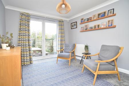 A spacious reception room with bay window to the front and glazed doors leading to the garden room. Fireplace with gas fire.