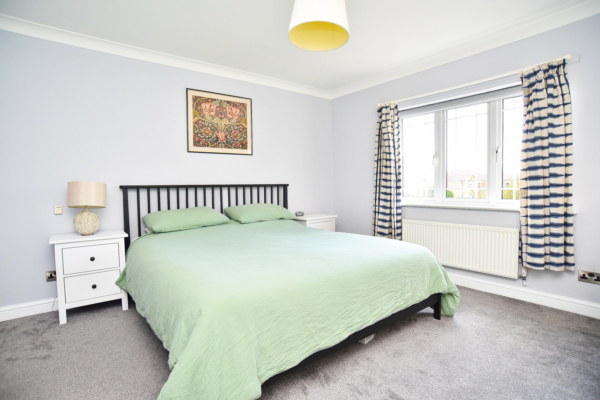 This impressive detached residence, originally built by David Wilson Homes, provides generous and versatile living space ideal for family life. The ground floor features four reception rooms including a spacious sitting room, separate dining room, home office, and family room. There is also a modern breakfast kitchen, utility and guest cloakroom. Upstairs, the principal bedroom includes an en-suite shower room and fitted wardrobes, with four further well-proportioned bedrooms served by a stylish family bathroom.