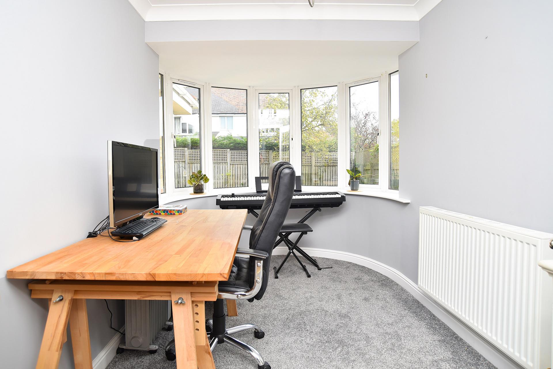 A useful workspace with bay window to the rear.