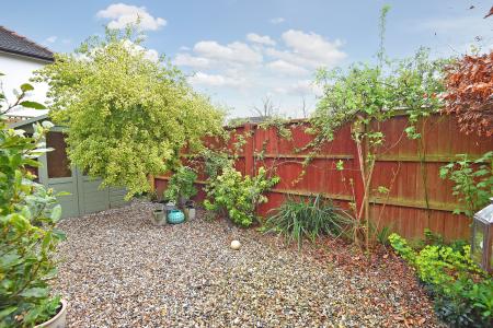 OUTSIDE Private and attractive easy-to-maintain rear garden with gate to the rear and a summerhouse.