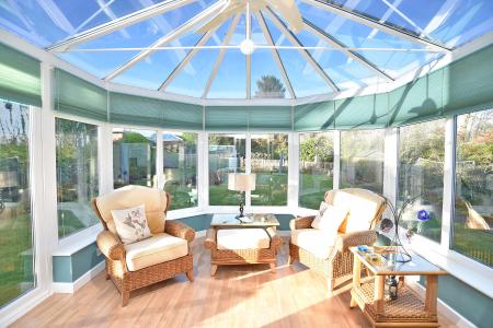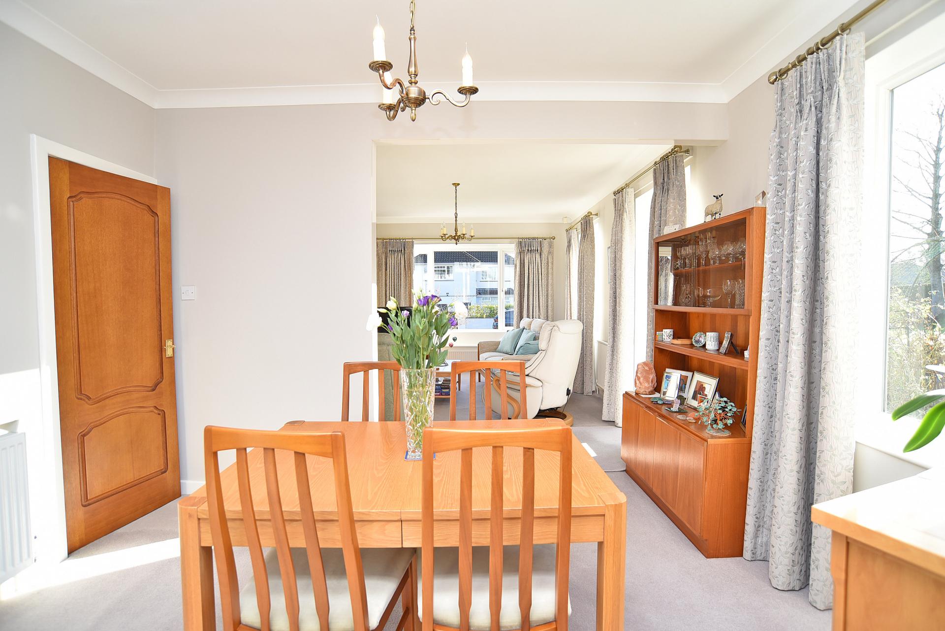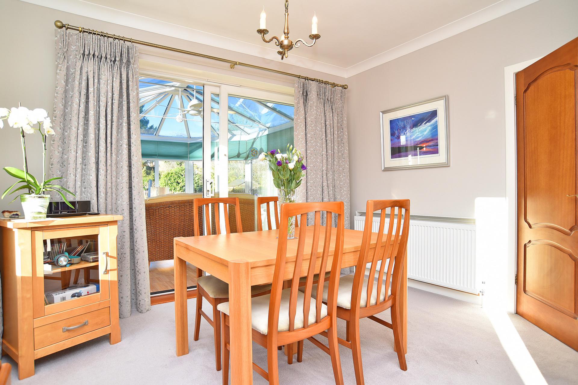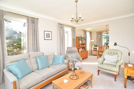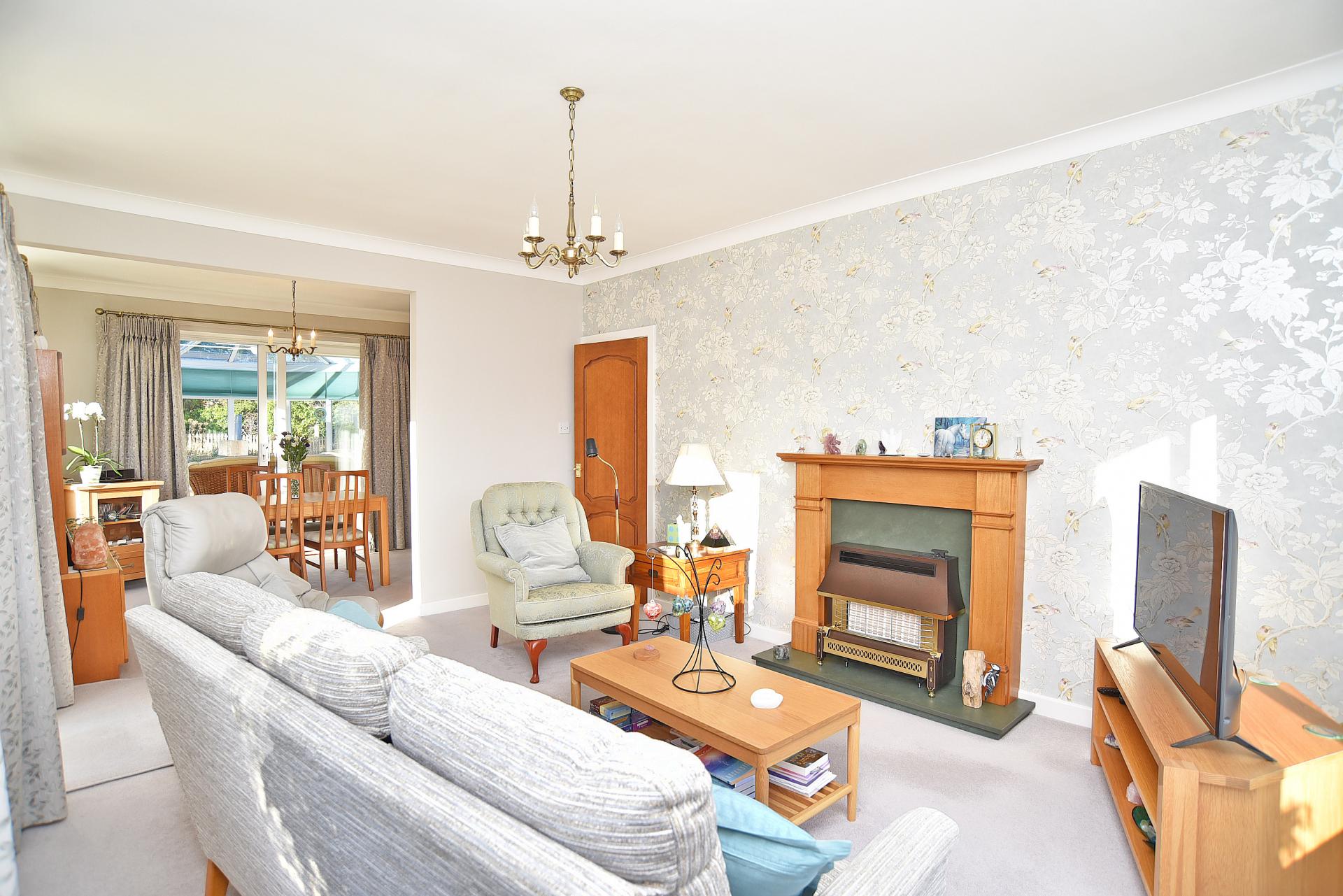 Attractive and bright lounge with gas fire and windows to side and front. Opening to dining room which leads to a good size conservatory.