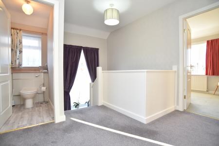Landing with access to attic and built in cupboard, 3 good sized double bedrooms with built in wardrobes.