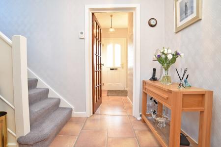 Entrance porch, entrance hall with stairs leading to first floor. Rear entrance hall with door to side, understairs cupboard, door to garage and cloakroom with wash basin and WC.
