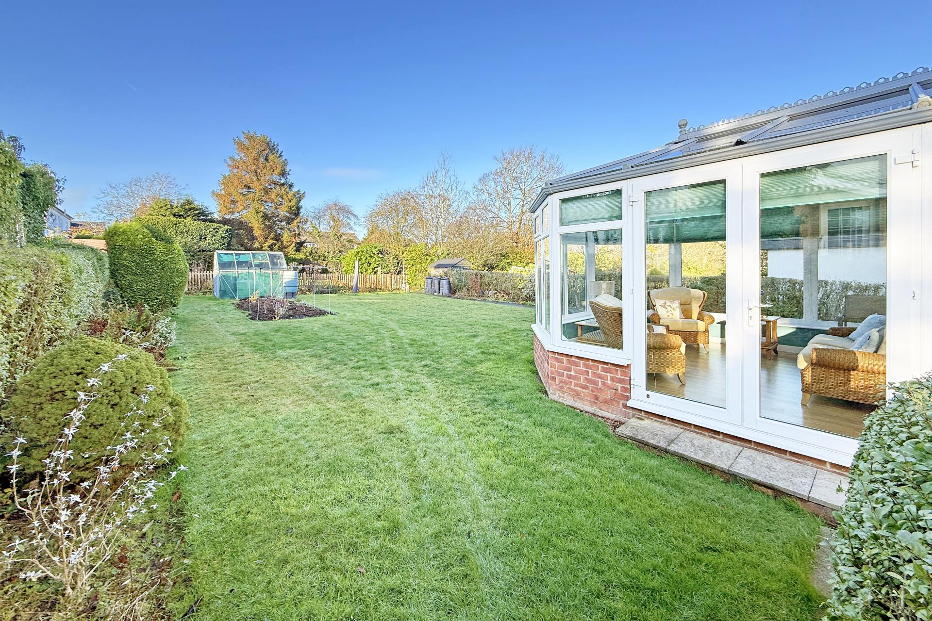 OUTSIDE Driveway leads to garage, mature gardens to the front and real. The rear garden incorporates shaped lawn, pathways and established borders.