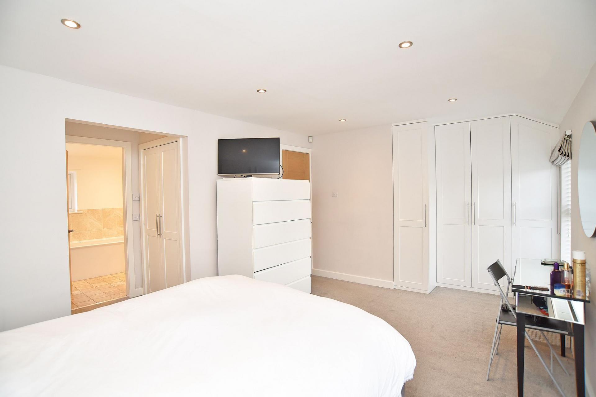 To the first floor there are four well-proportioned bedrooms. The principal bedroom forms an attractive suite featuring fitted wardrobes and a spacious en-suite bathroom comprising a bath, separate shower enclosure, twin washbasins and WC. Bedroom two also benefits from its own en-suite shower room, while two further double bedrooms are served by the house bathroom.