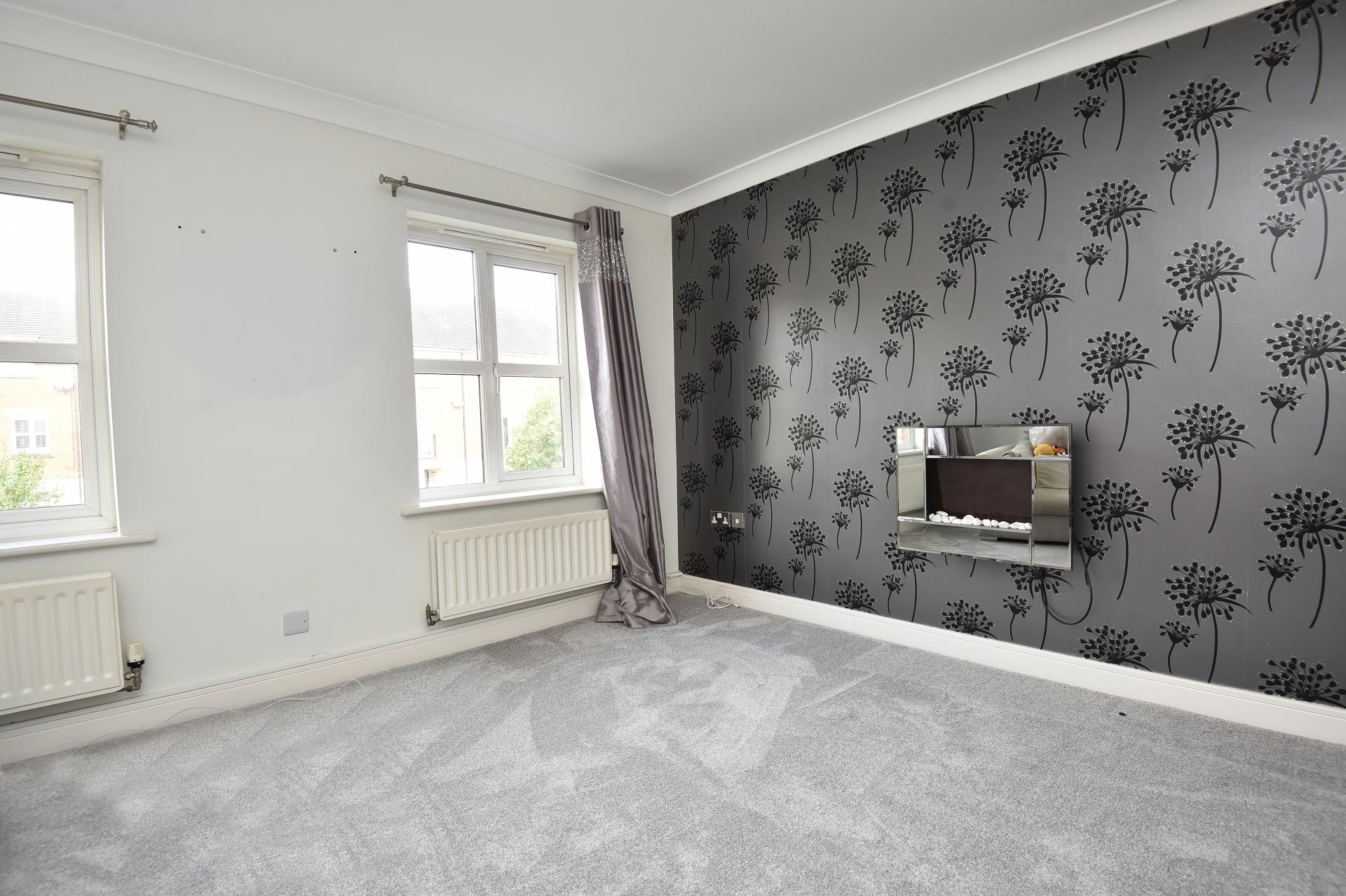 A double bedroom with windows to rear.