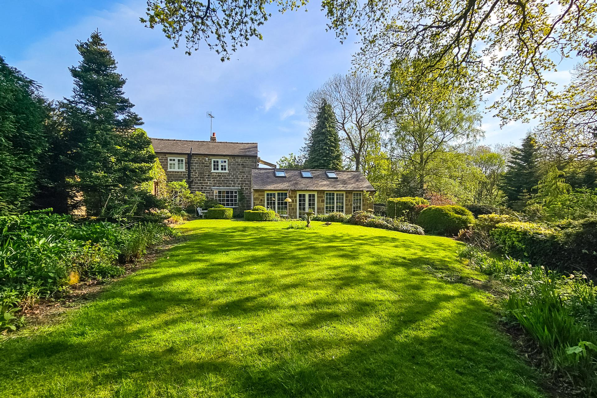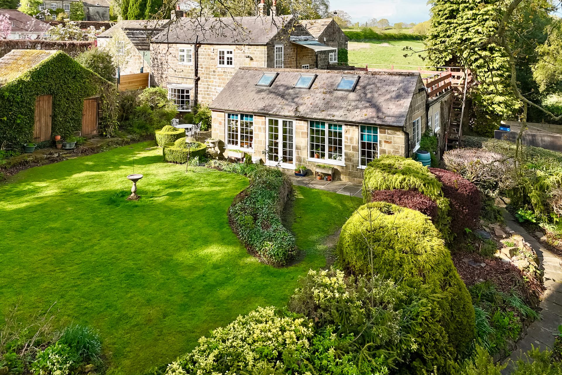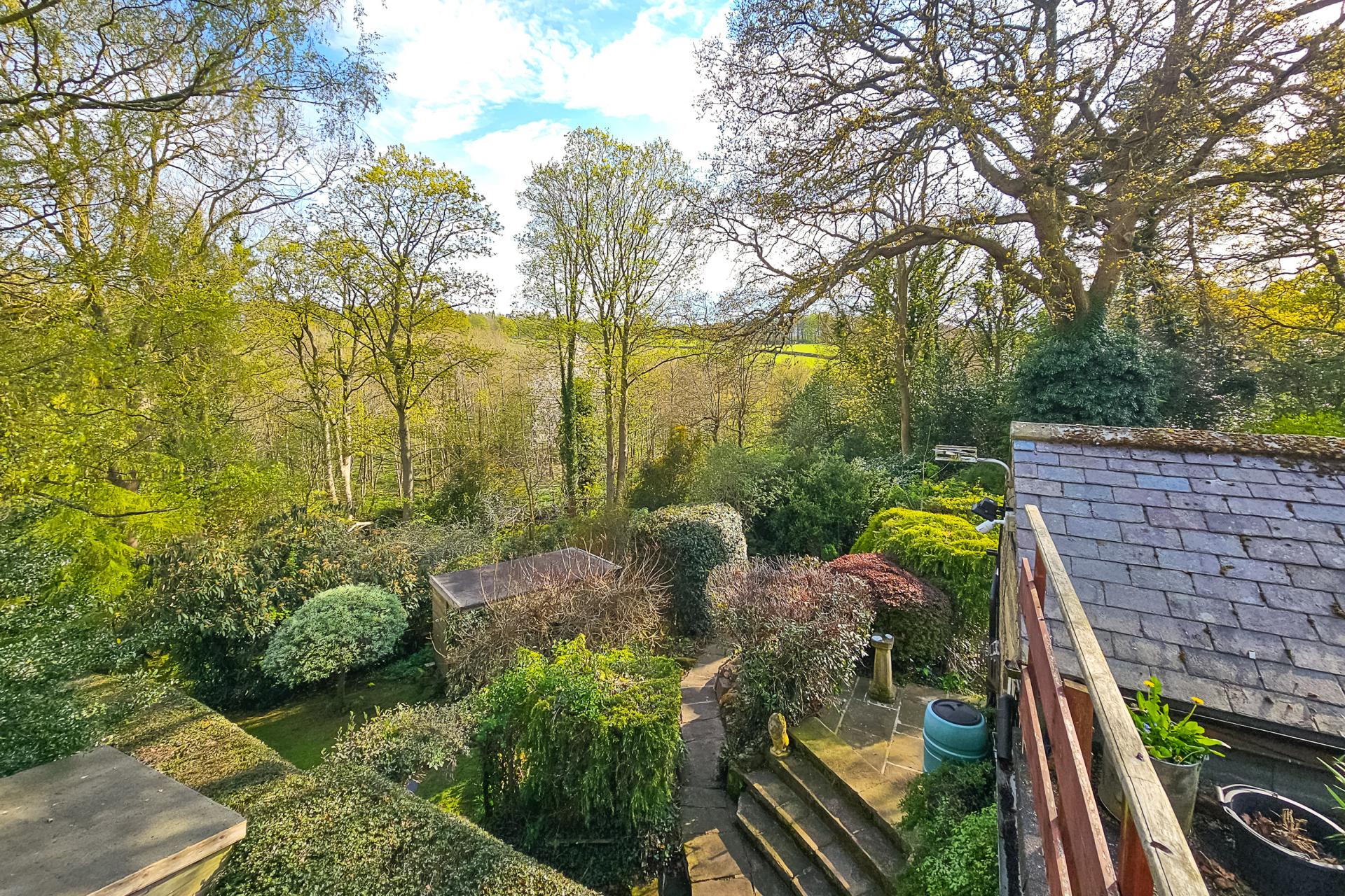To the rear of the property is an attractive lawned garden with planted borders, sitting areas and two useful stone storage sheds. Beyond the lawned back garden, steps lead to a woodland area and bog garden, from which there are steps (some uneven) leading to a further natural grassed area and the Crimple Beck. This, and a good size timber summerhouse, provide an excellent tranquil space for sitting and relaxing.