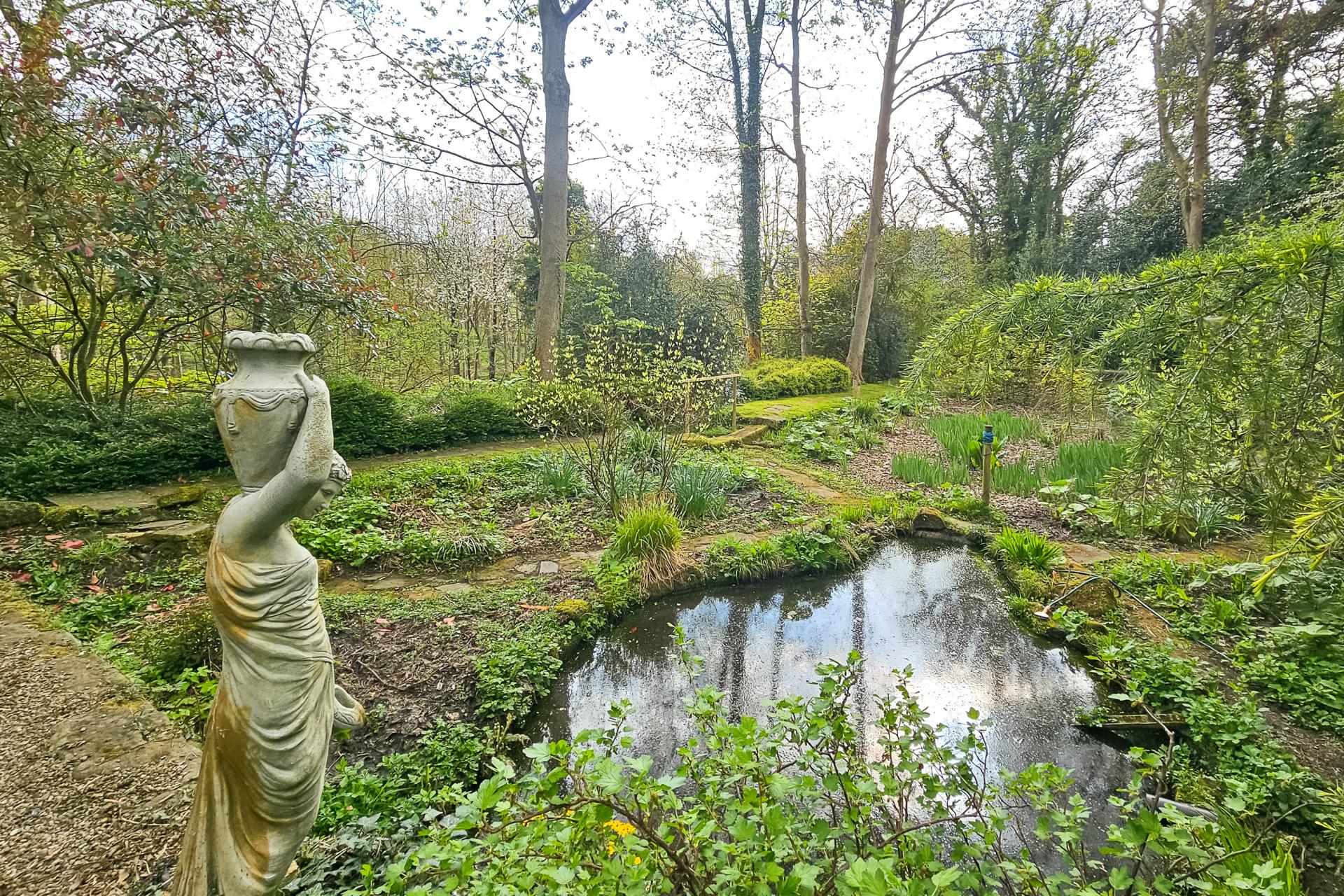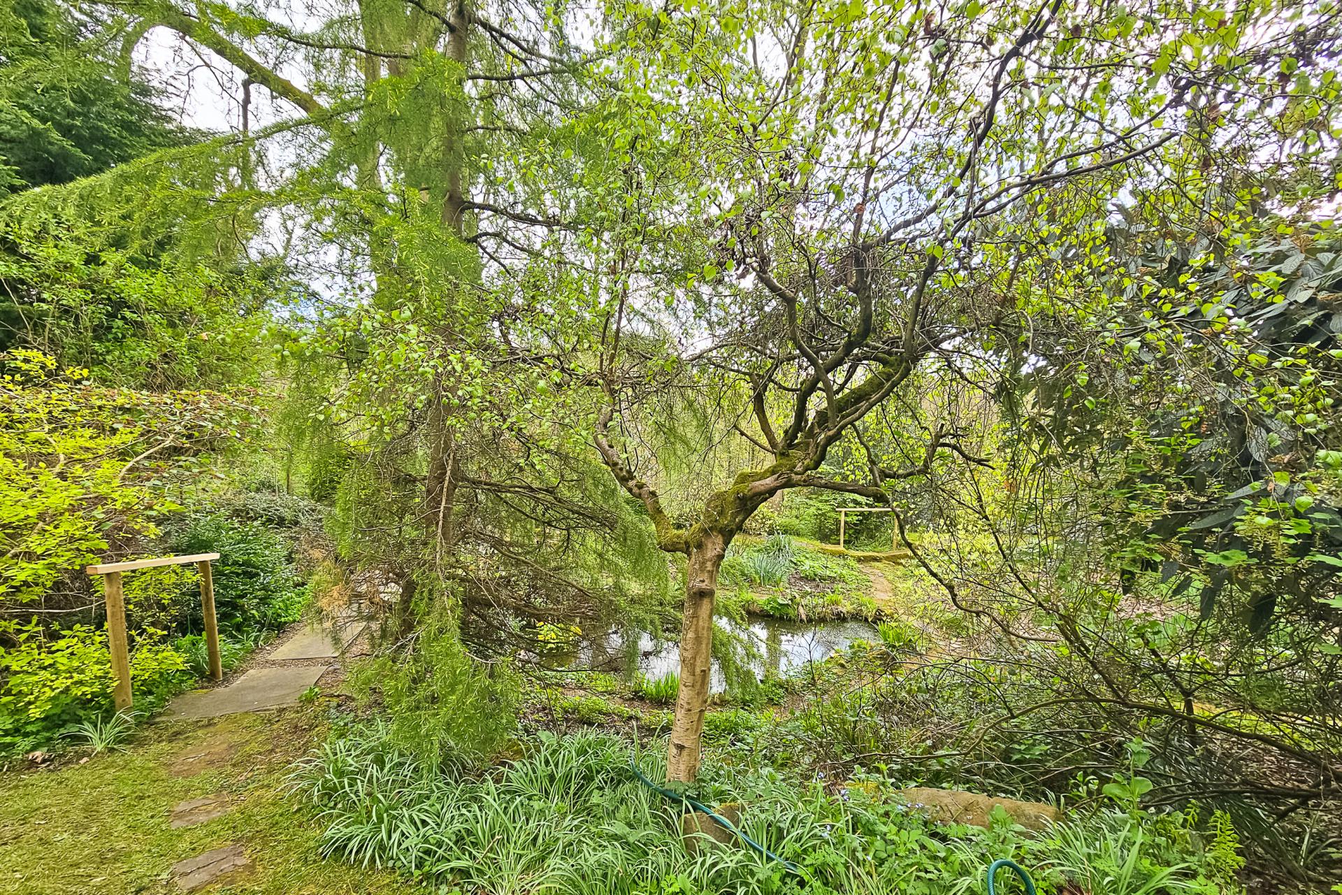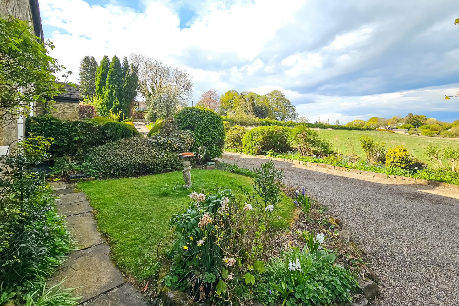 To the rear of the property is an attractive lawned garden with planted borders, sitting areas and two useful stone storage sheds. Beyond the lawned back garden, steps lead to a woodland area and bog garden, from which there are steps (some uneven) leading to a further natural grassed area and the Crimple Beck. This, and a good size timber summerhouse, provide an excellent tranquil space for sitting and relaxing.