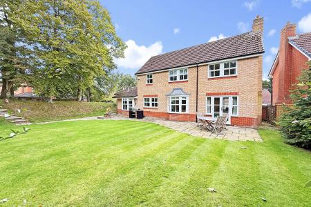 This impressive property offers generous and flexible accommodation, ideal for modern family life. The ground floor features a spacious sitting room with bay window and French doors leading to the garden, a stylish open-plan dining kitchen, and a study. There is also a useful utility room and guest cloakroom. In addition, a self-contained ground-floor suite provides excellent versatility, offering potential for dependent relatives, a playroom or additional reception space. Upstairs, a galleried landing leads to four further bedrooms including a principal bedroom with ensuite shower room, and a modern house bathroom. Outside, the property occupies a larger than average plot with private gardens, ample driveway parking and a detached double garage.