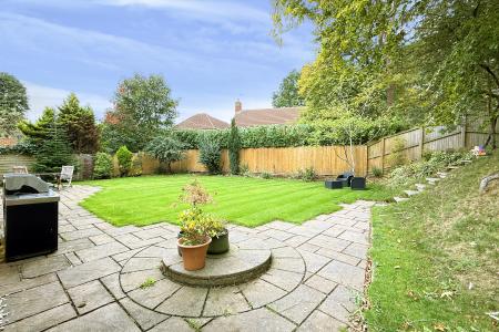 OUTSIDE The property is approached via a driveway providing parking for multiple vehicles and leading to a detached double garage with light and power. The rear garden enjoys a westerly aspect and features a large lawn, flagged patio areas and mature trees providing privacy. The garden extends to the side and rear of the garage, offering an ideal play area for children.