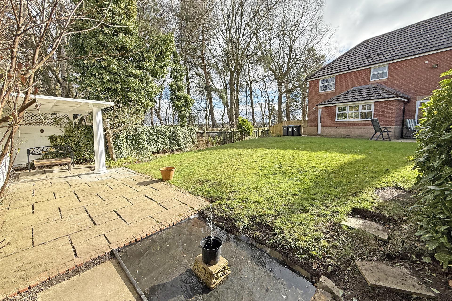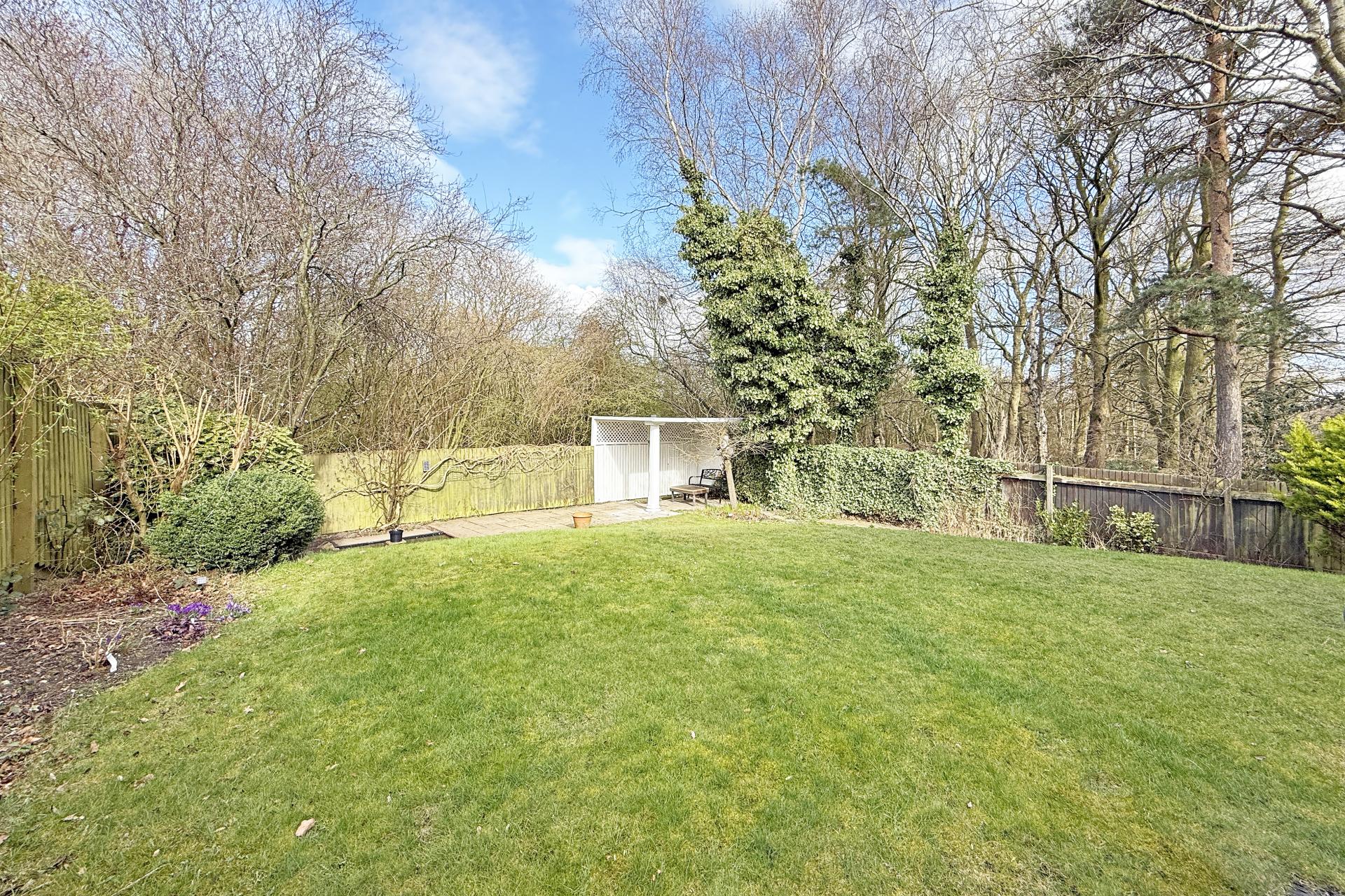 OUTSIDE A drive provides parking and leads to a detached double garage with light and power. The property occupies a large corner plot with good sized garden with lawn and paved sitting areas and covered sitting area, enjoying a delightful private aspect overlooking Killinghall Moor Park on two sides. Timber garden shed.