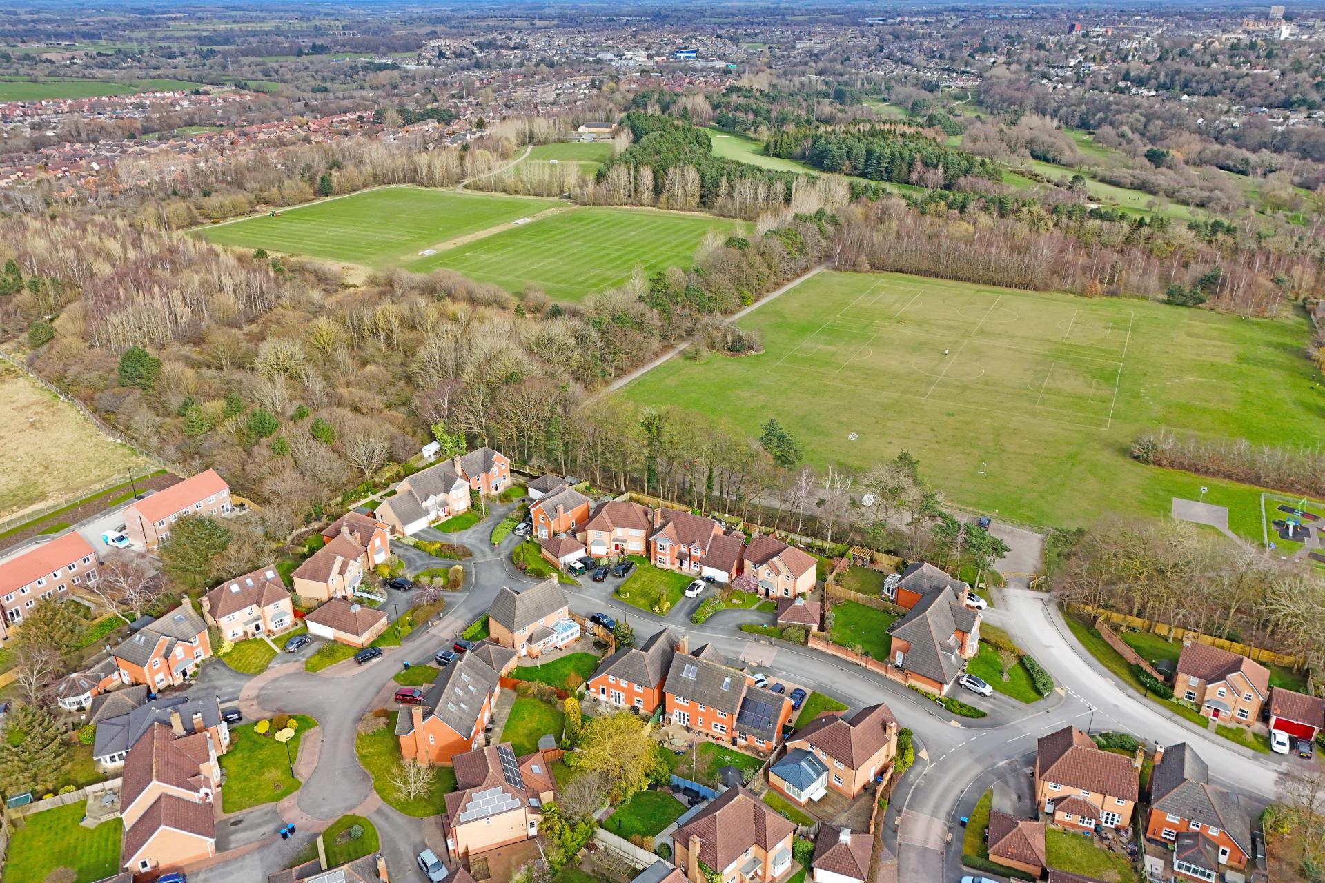 The property is situated on a quiet cul-de-sac within this sought-after development, surrounded by beautiful open countryside and just a short drive from Harrogate town centre.