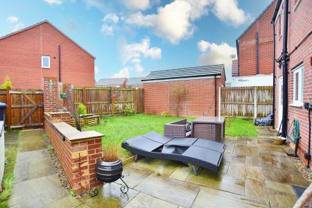 OUTSIDE Externally, the property enjoys a neatly maintained front garden, a generous side garden, and a west-facing rear garden laid to lawn with patio seating areas, providing excellent outdoor space and privacy throughout the day.