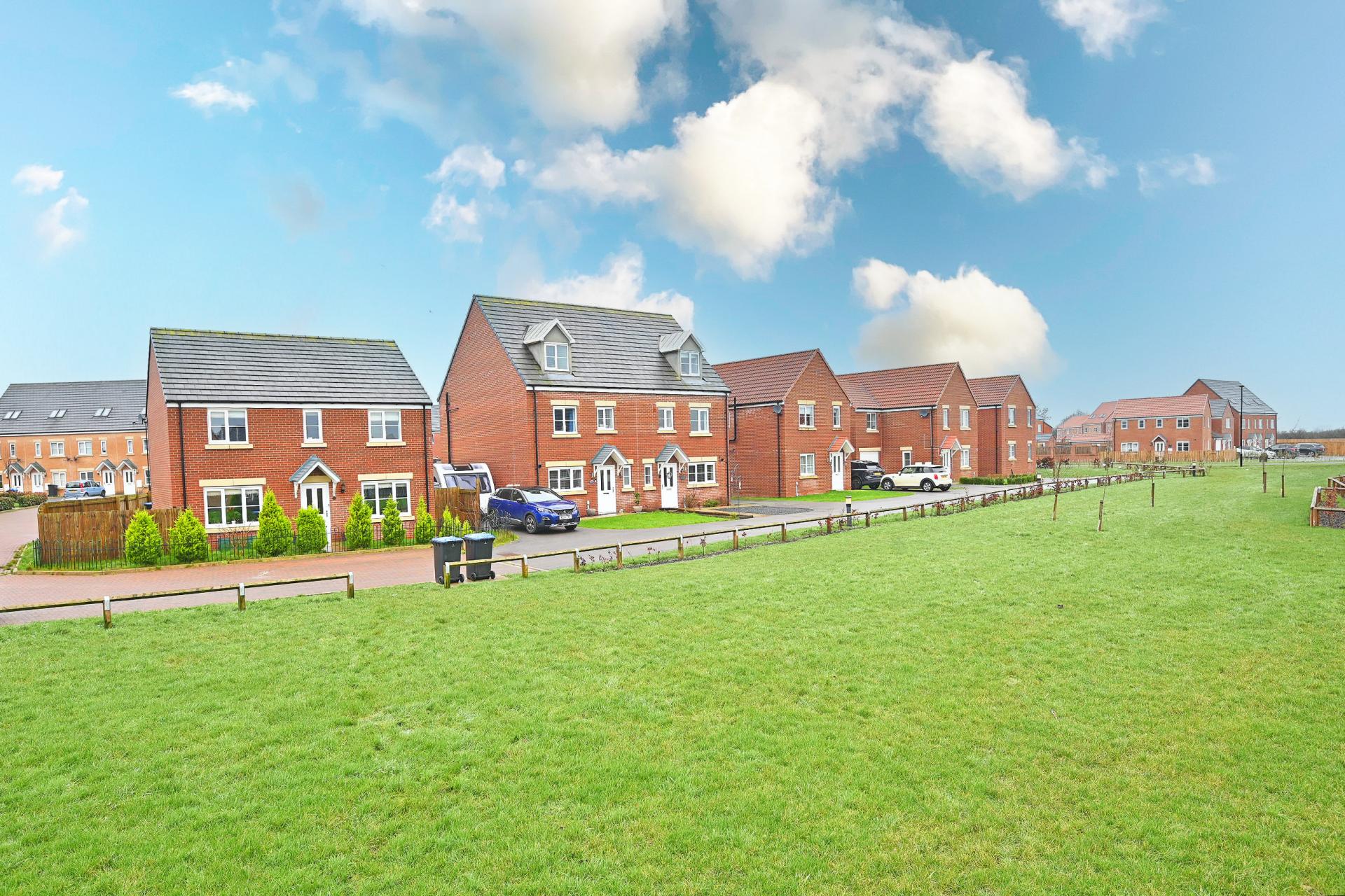 An attractive double-fronted detached family home offering four bedrooms and two bathrooms, occupying a particularly generous corner plot with a pleasant open outlook over the green. The property also benefits from off-street parking for two vehicles and has approximately seven years remaining on the new-build warranty.