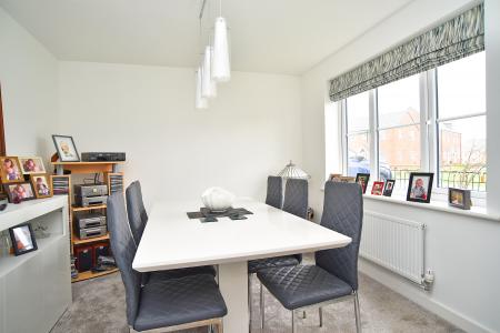 ACCOMMODATION The accommodation is arranged over two floors and is well suited to modern family living. To the ground floor there is a well-proportioned sitting room positioned to the front of the property, enjoying attractive views across the green, together with a separate dining room/additional reception room, offering excellent flexibility for use as a formal dining room, home office, or playroom. A downstairs WC sits off the hallway.