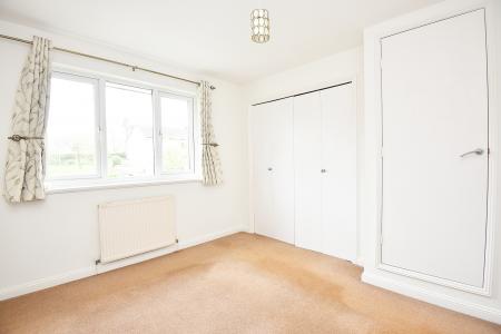 A double bedroom with double-glazed window to front and fitted wardrobes with folding doors. Shelved airing cupboard housing hot-water cylinder.