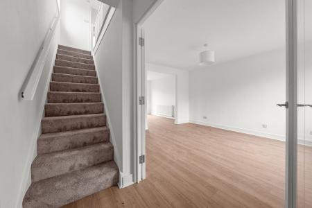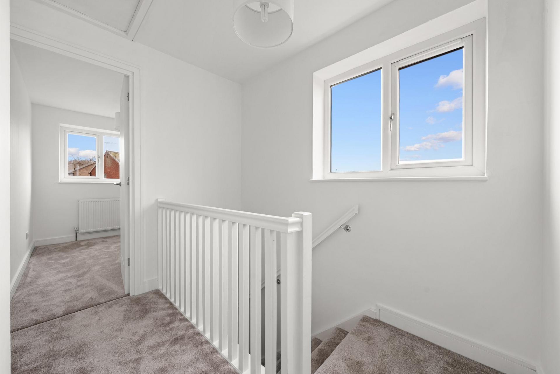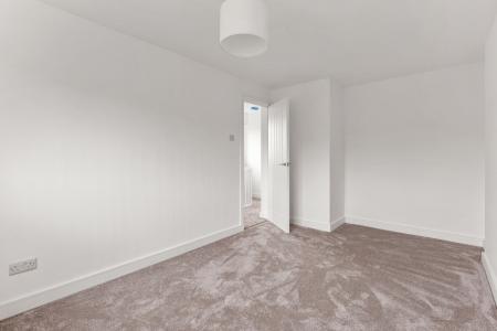 To the first floor are three well-proportioned bedrooms, all newly decorated and finished in neutral tones with modern carpeting. The principal bedroom is a generous double room with excellent natural light. Bedroom two is a further spacious double and benefits from a fitted wardrobe providing useful built-in storage. Bedroom three offers flexibility as a single bedroom, nursery or home office.