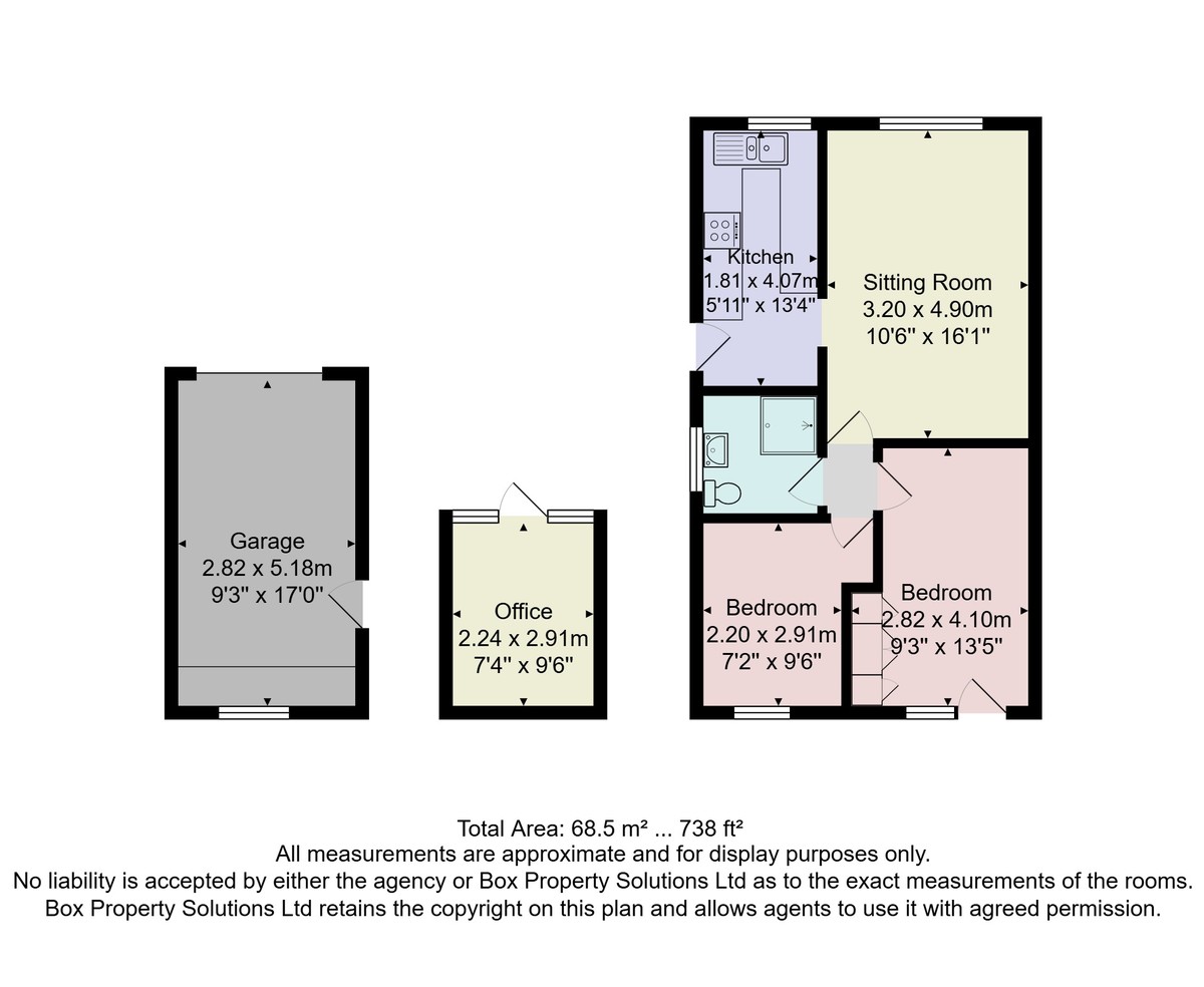 The accommodation features a spacious sitting room, modern kitchen, two bedrooms, and a shower room. Outside, there is ample parking, a garage, an attractive garden, and a useful garden office with light and power, ideal for home working. No chain.
