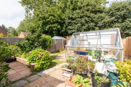 OUTSIDE A driveway provides ample parking and leads to a single garage. There is an attractive rear garden with lawn, planted borders, and sitting areas. Greenhouse.