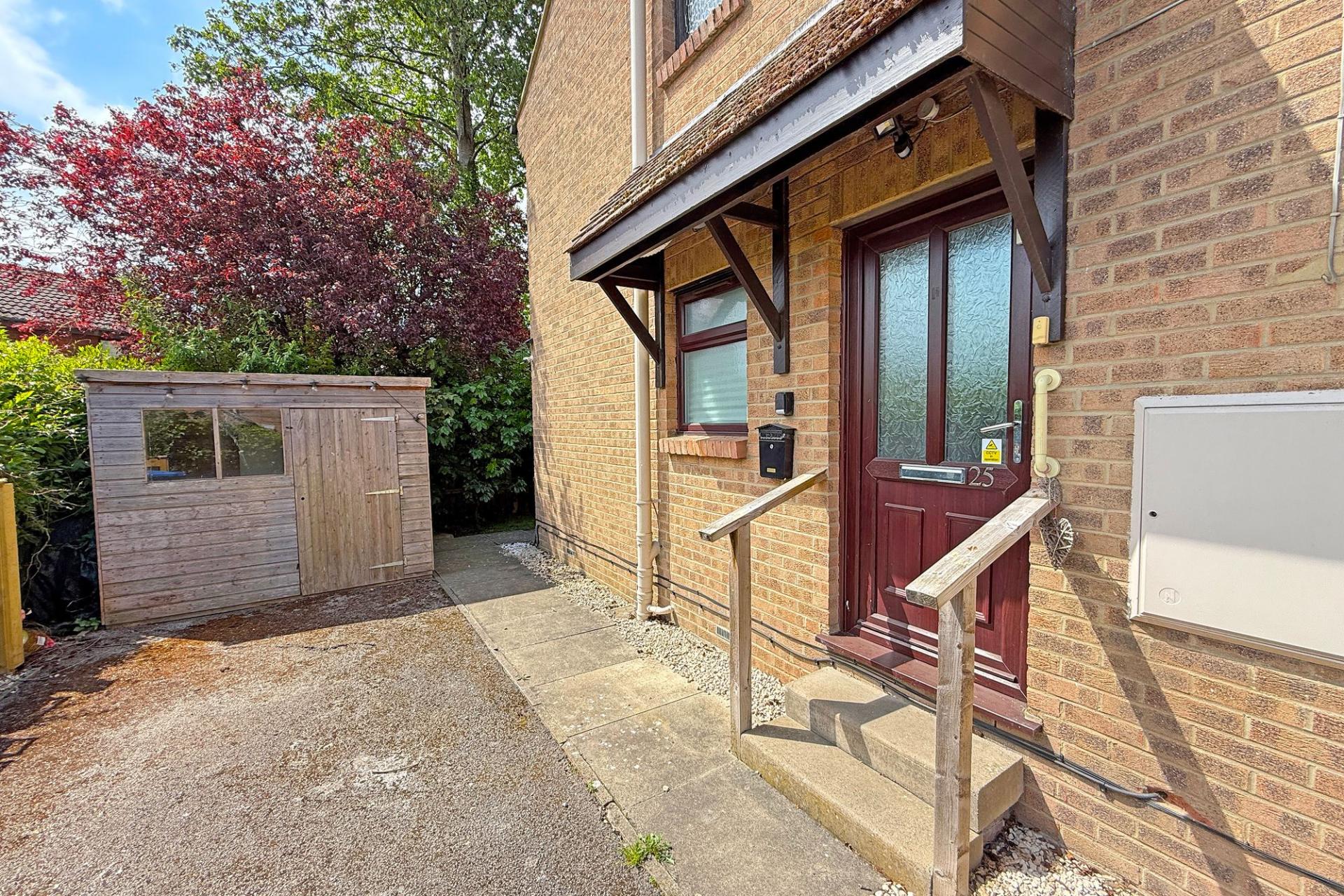 A two-bedroom ground-floor apartment with private entrance, parking and access to communal gardens, on a quiet cul-de-sac well served by nearby local amenities.
