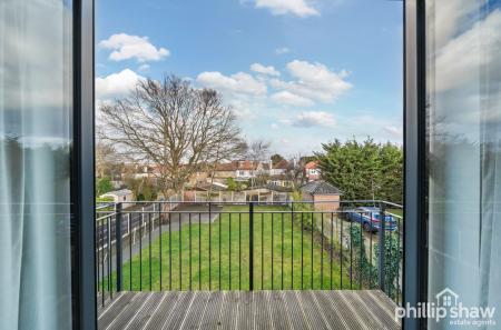There are two bedrooms positioned to the rear of the building, both benefiting from good natural light. The principal bedroom enjoys direct access to a private balcony, overlooking the communal gardens, providing a pleasant and peaceful outlook. The second bedroom is well suited for use as a guest room, home office, or additional bedroom. A modern bathroom is centrally located and finished to a good standard.