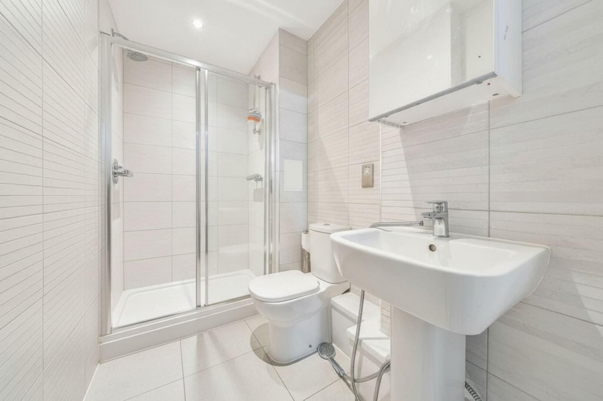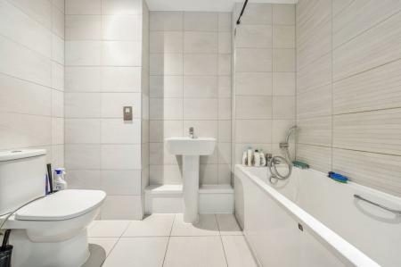 Both bedrooms are well-proportioned doubles, offering ample space for storage and furnishings. The principal bedroom benefits from a modern en-suite shower room, while a separate contemporary family bathroom serves the second bedroom and guests.