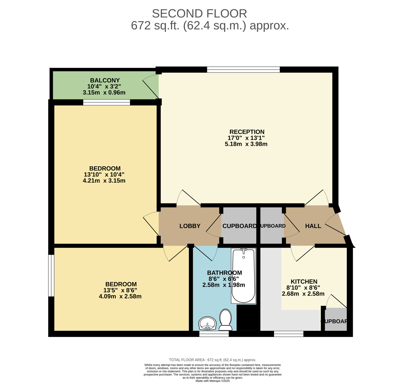 A SHARE OF FREEHOLD, purpose built second floor flat with two double bedrooms, lounge, kitchen, family bathroom and a balcony. The property has a secure entryphone system, gas central heating and double glazed windows.