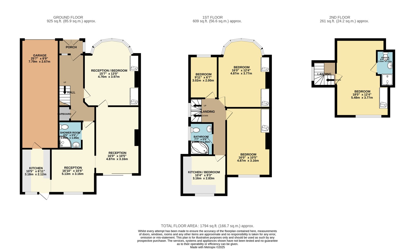 A chain free, larger than average and well proportioned 4 to 6 bedroom semi-detached property with three bathrooms / wc (one on ground floor), kitchen, three reception rooms (one currently used as a bedroom), off street parking to the front, 25' long garage and approx 100' south facing rear garden.
