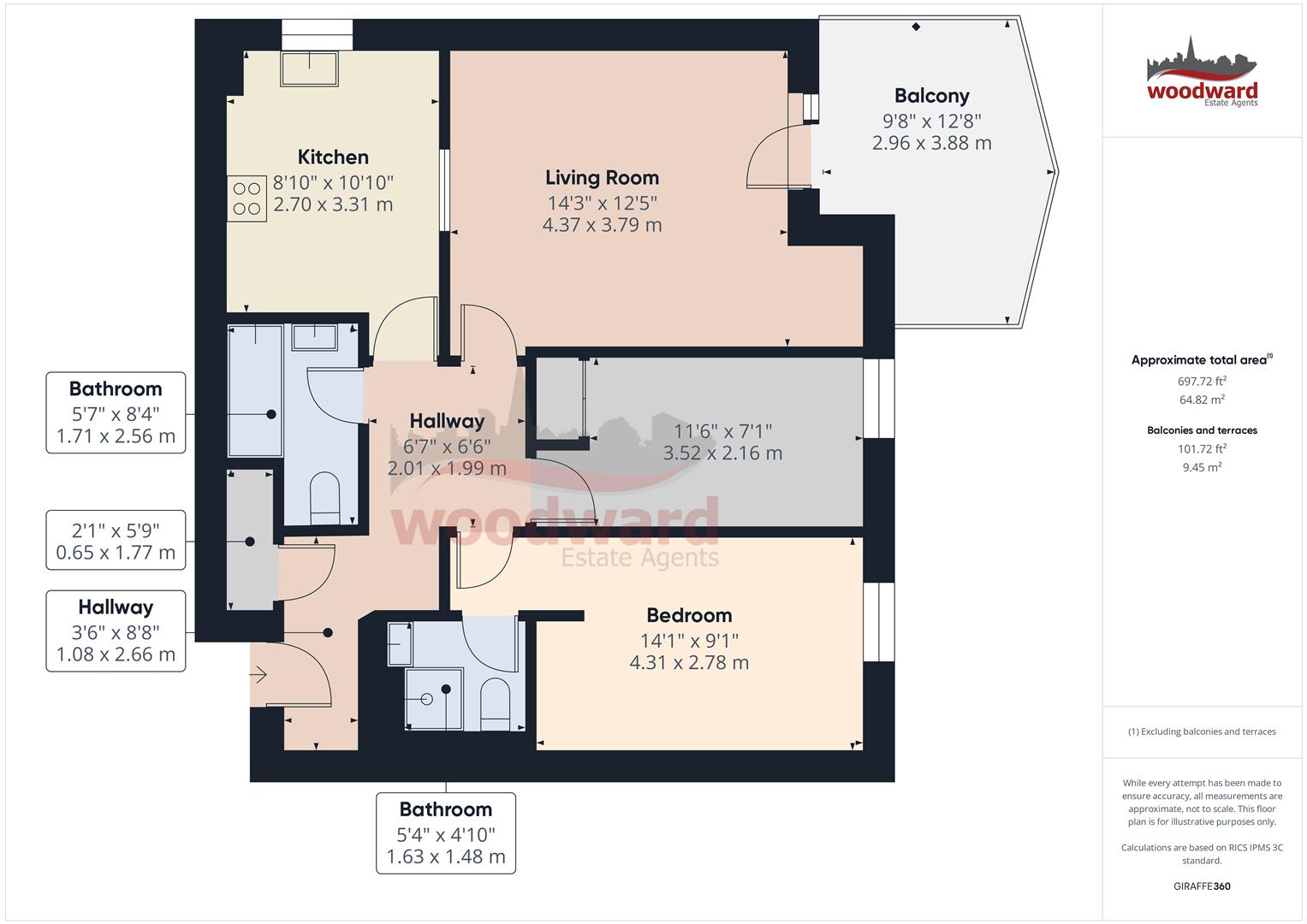 The apartment features a bright and spacious living room, with large windows allowing plenty of natural light and access to a private balcony. The separate kitchen is well-fitted with ample storage, generous worktop space and integrated appliances. The main bedroom benefits from built-in storage and an en-suite shower room, while the second bedroom is well-sized. A separate family bathroom includes a full-sized bath.