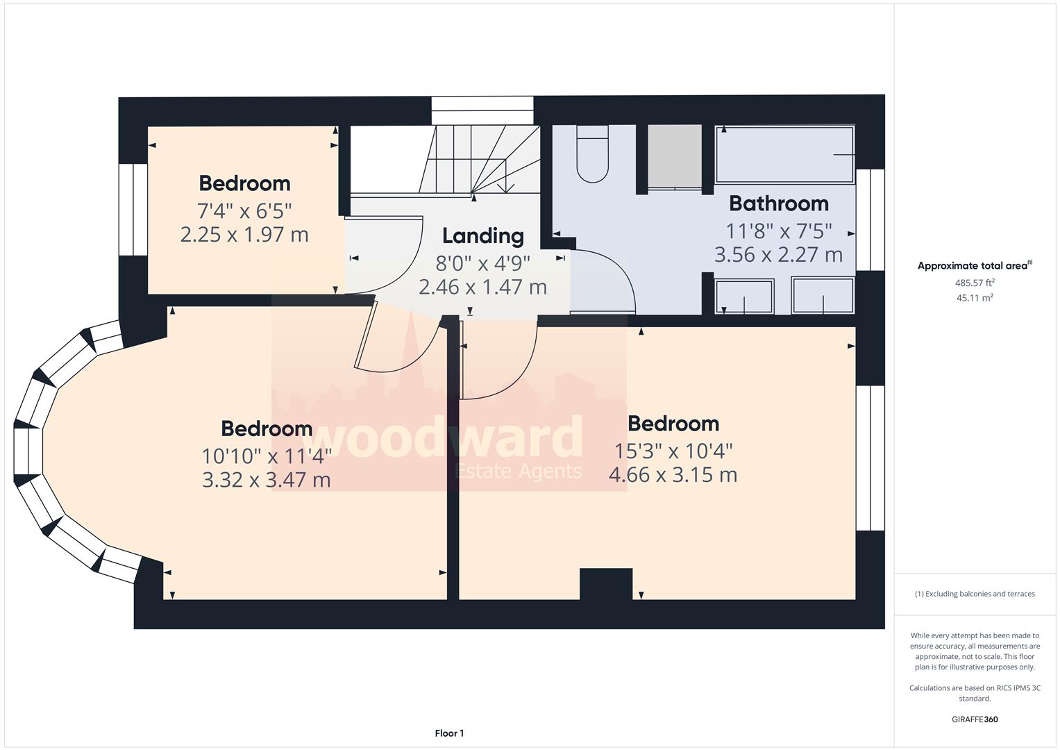 Bedroom - 3.32 x 3.47 (10'10" x 11'4") -