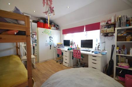 A chain free, three double bedroom semi-detached chalet bungalow with own driveway leading to garage to side providing p...