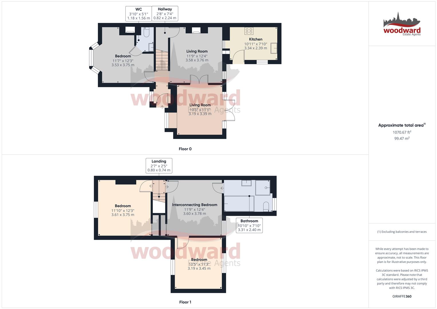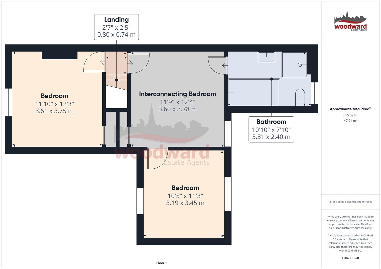 Interconnecting Bedroom - 3.60 x 3.78 (11'9" x 12'4") -