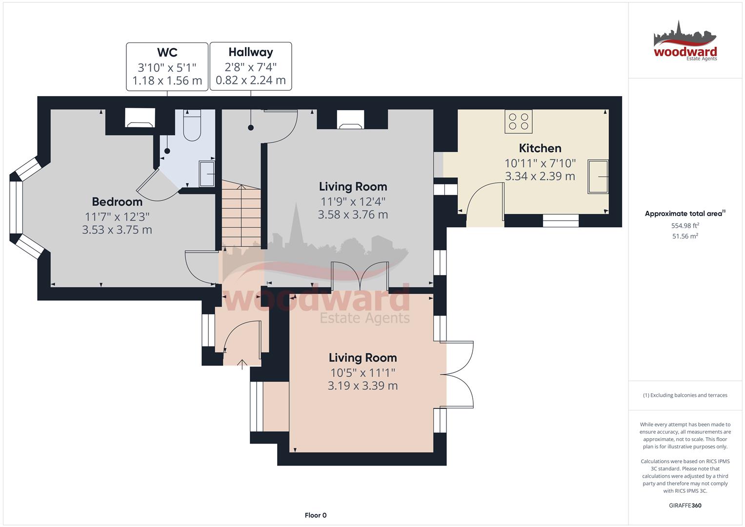 W/C - 1.18 x 1.56 (3'10" x 5'1") -