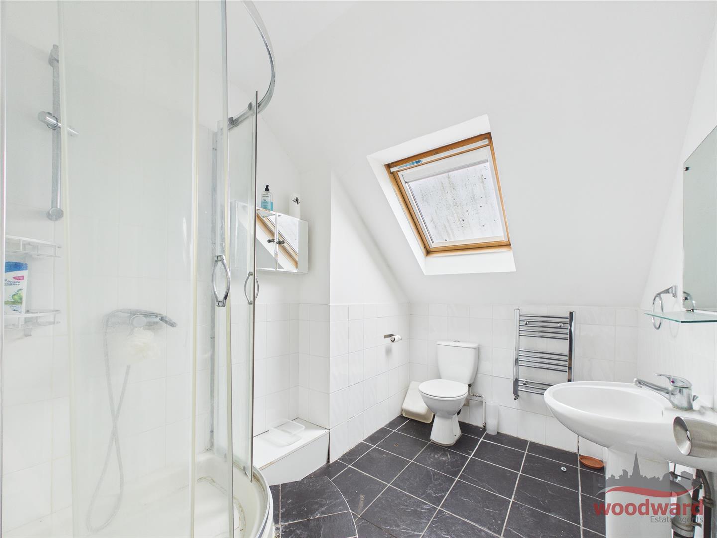 Stairs lead to an impressive upper level, where a large principal bedroom is set within the loft space. This room benefits from useful eaves storage and a private shower room, creating a quiet and self contained retreat within the home.