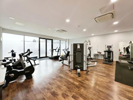 The apartment opens into a spacious entrance hallway featuring a large utility cupboard, ideal for housing a washer/dryer and additional household items, together with a separate storage cupboard providing excellent practicality rarely found in modern apartments. At the heart of the home is a generous open-plan kitchen and reception area, thoughtfully designed for both everyday living and entertaining. The kitchen is fitted with modern cabinetry, stone worktops and integrated appliances, flowing seamlessly into a bright living space with large glazed doors opening onto a private balcony, perfect for relaxing or outdoor dining.