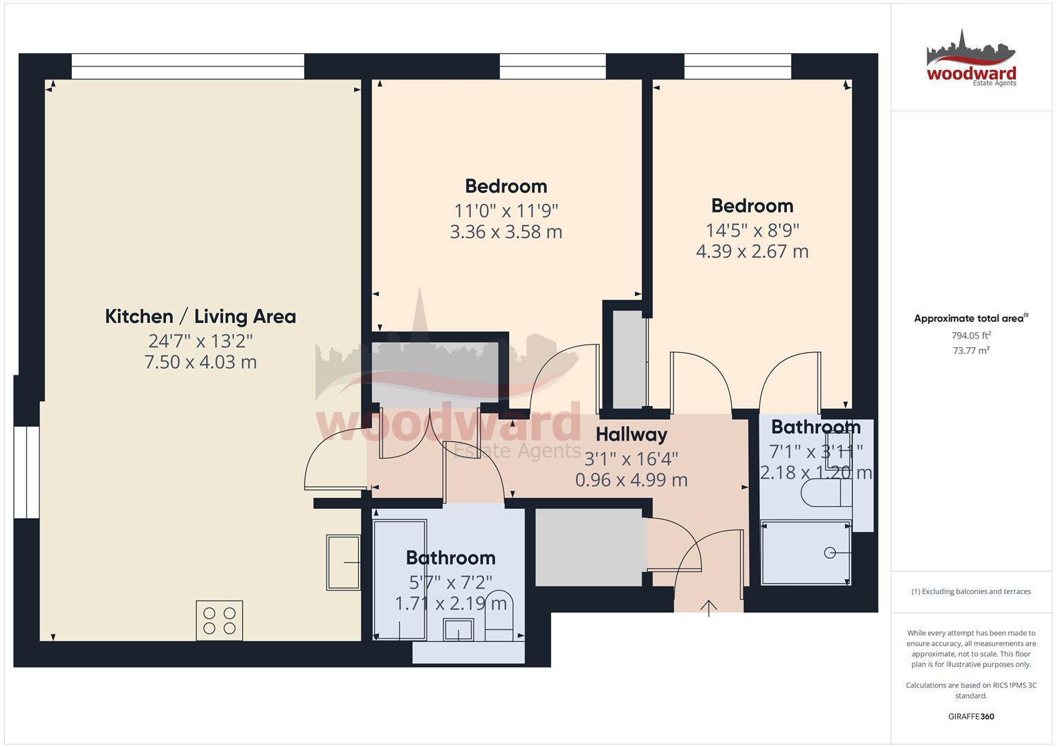 The two bedrooms are generously sized, with the main bedroom benefiting from a stylish en-suite shower room. A separate family bathroom, finished to a high standard, serves the second bedroom and guests.