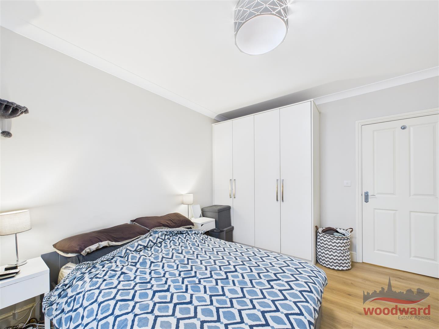 The large double bedroom, with bespoke fitted storage and generous proportions allow for a sense of openness. Natural light filters in softly, enhancing the apartment's serene atmosphere.