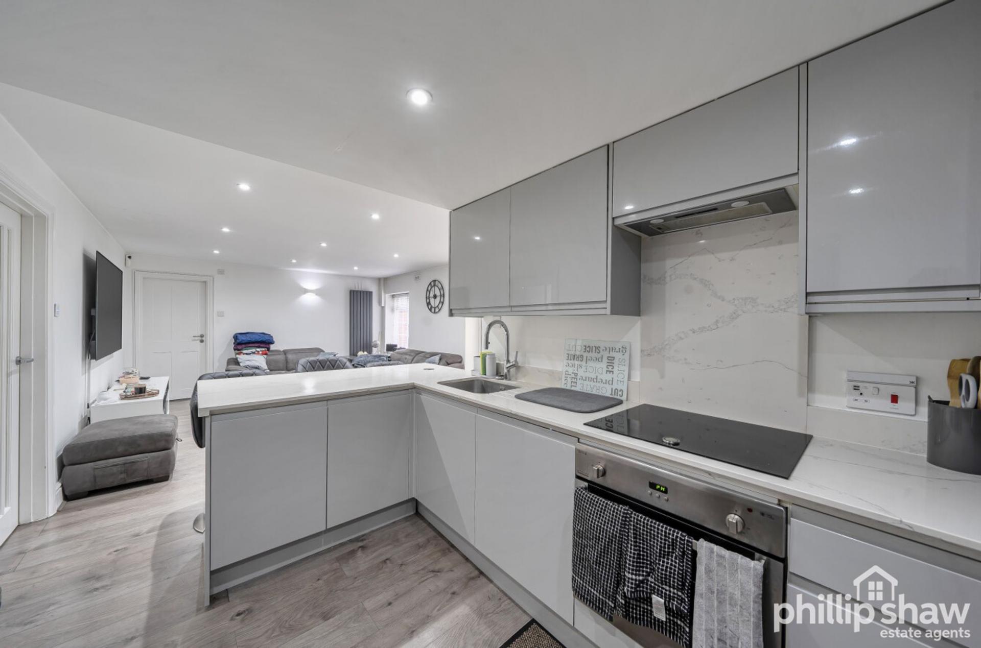 The property opens into a generous kitchen / reception room, creating a bright and sociable living space ideal for both everyday living and entertaining. The kitchen is thoughtfully arranged with ample storage and work surfaces, flowing seamlessly into the main living area.
