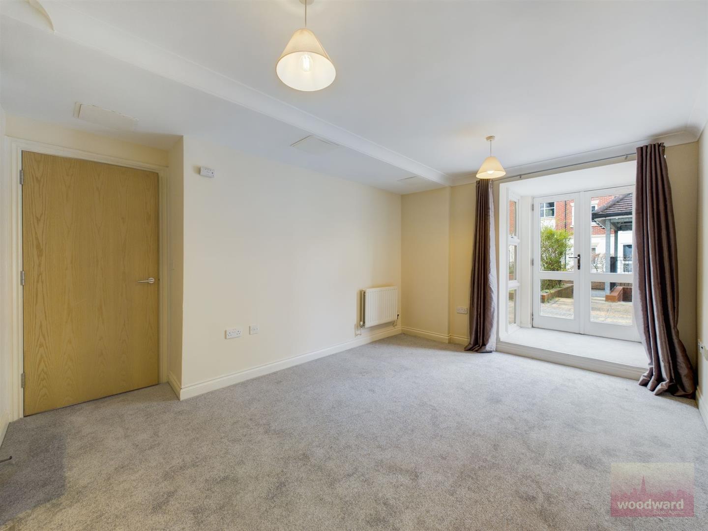 The flat features two spacious double bedrooms, one of which is an ensuite for added privacy and convenience. The modern kitchen is fully equipped, and a cosy living room provides direct access to the communal garden, perfect for indoor-outdoor living.
