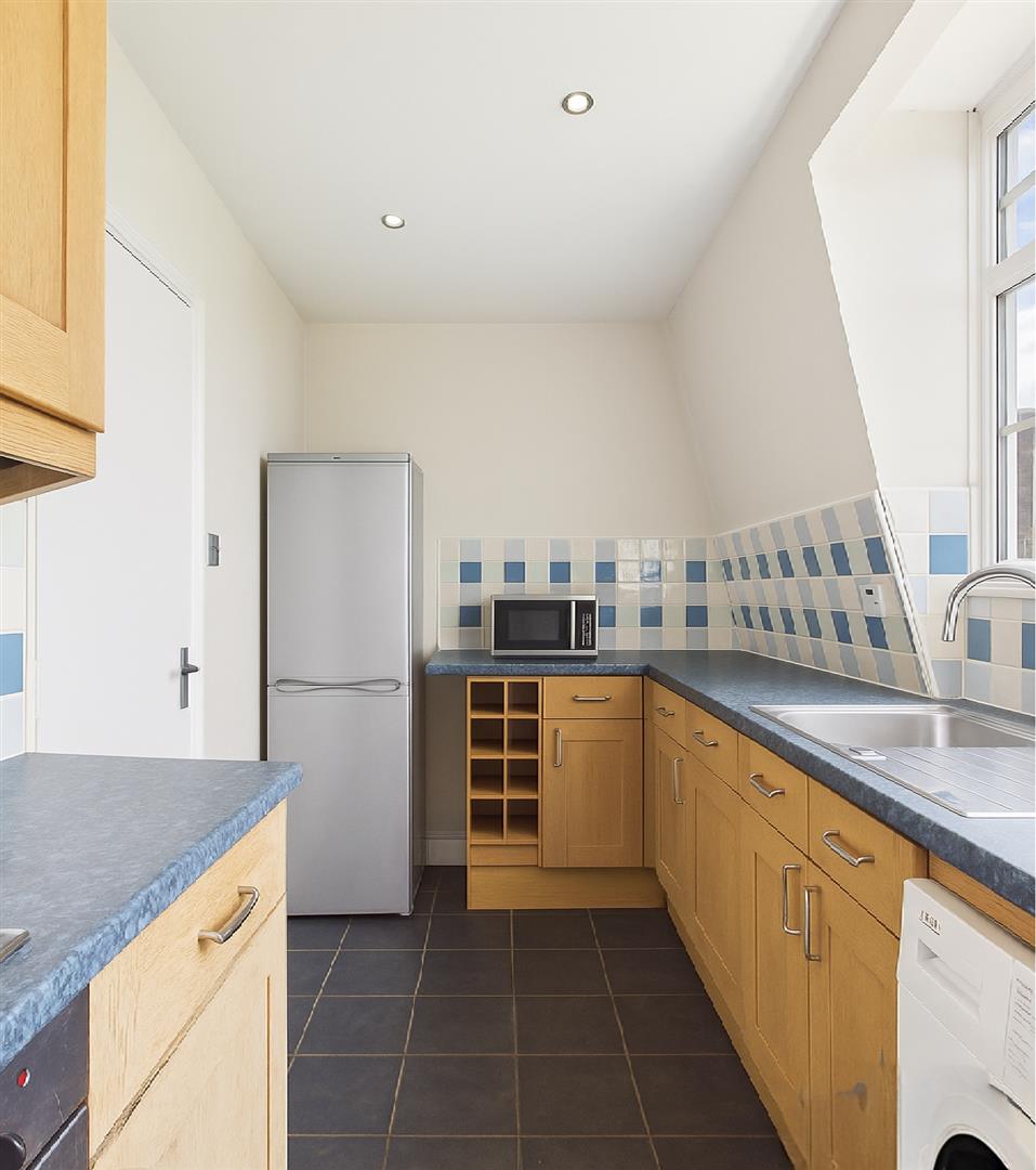 The development is positioned on a quiet residential road and benefits from well-kept communal gardens, residents' parking, and a private garage for additional storage or secure parking. The top-floor setting provides a sense of calm and privacy, with open views from all principal rooms.