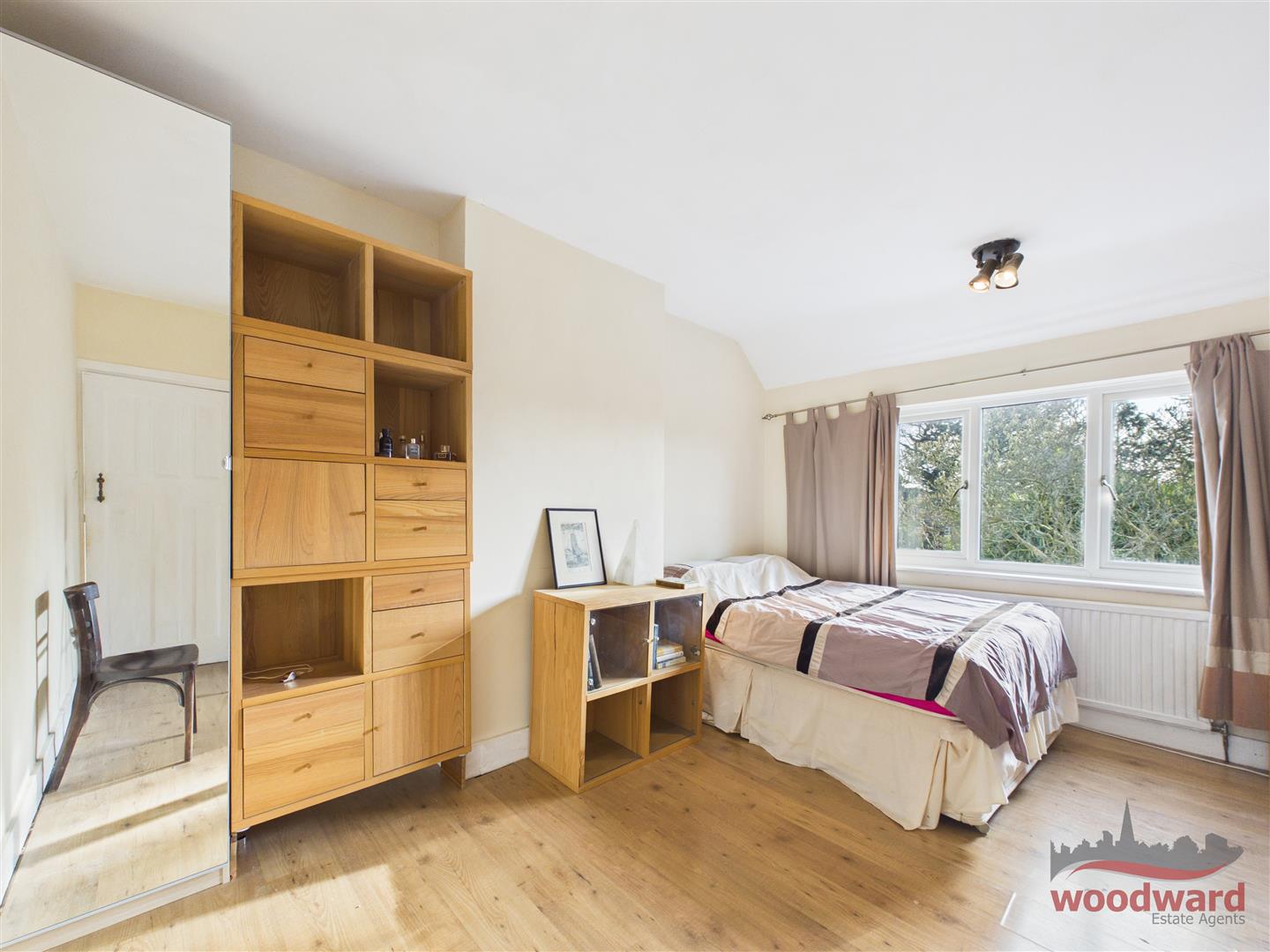 Upstairs, three well proportioned bedrooms are arranged around a central landing. The principal bedroom benefits from a wide bay window and fitted storage, while the remaining rooms are generous and adaptable for family members, guests or home working. A family bathroom completes the first floor.