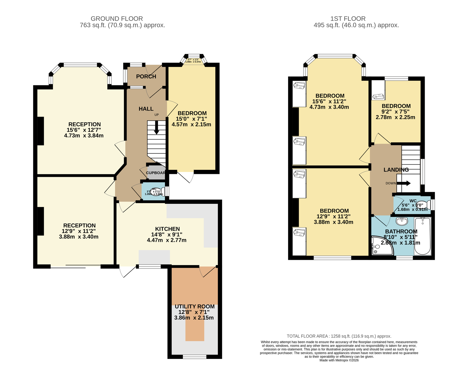 - Four bedrooms (1 on ground floor)