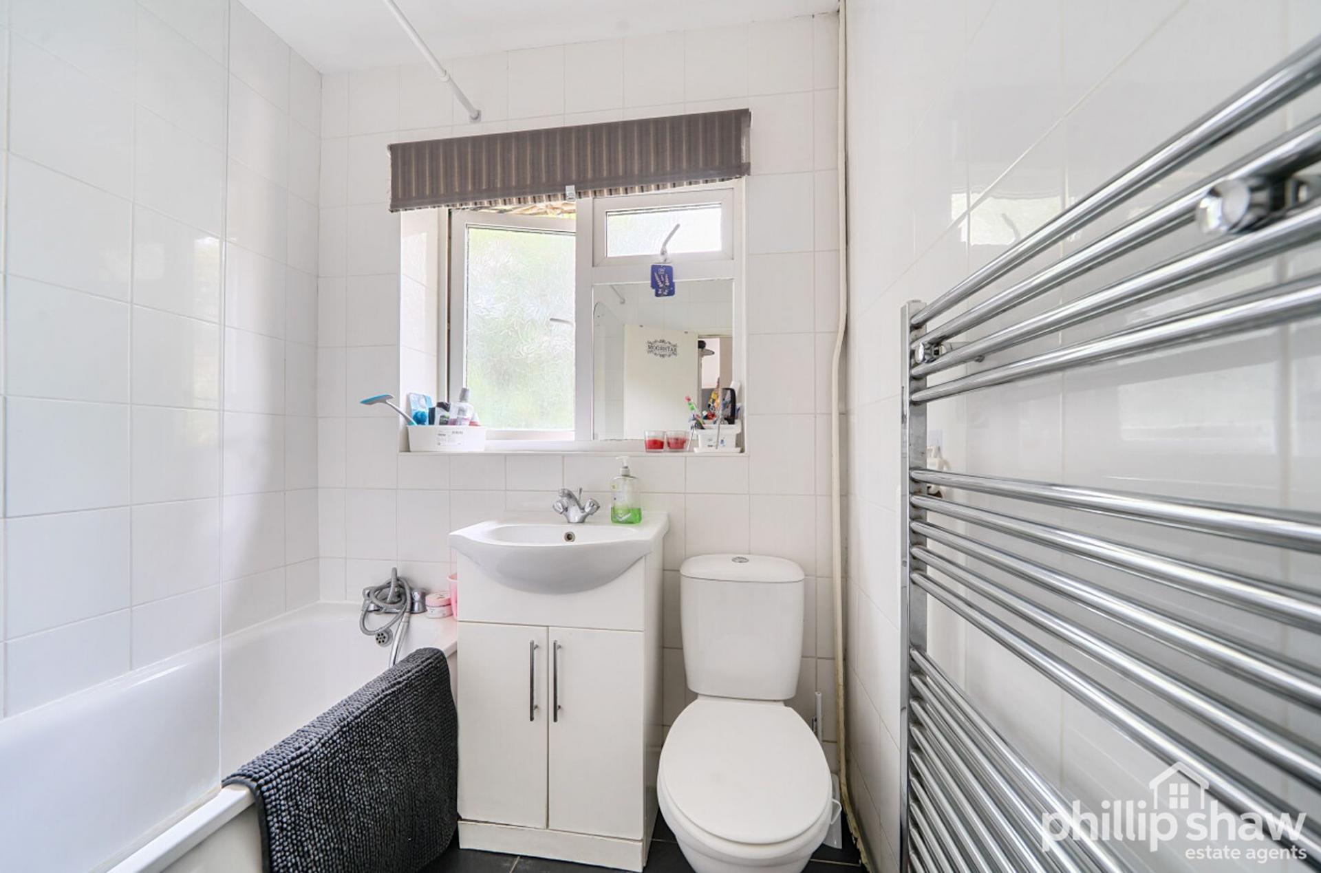 The property features two bedrooms – a generous principal bedroom with fitted storage and a comfortable second bedroom, ideal as a child’s room, guest space or study. A modern family bathroom completes the accommodation.