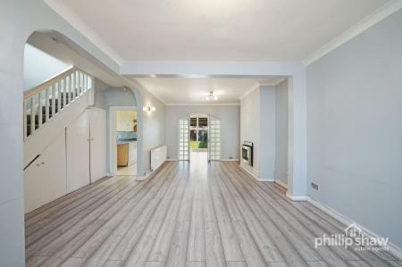 The ground floor features a through reception room with space for both living and dining, leading through to a rear kitchen diner created by the extension. This area provides good storage and worktop space, along with access to the rear garden.