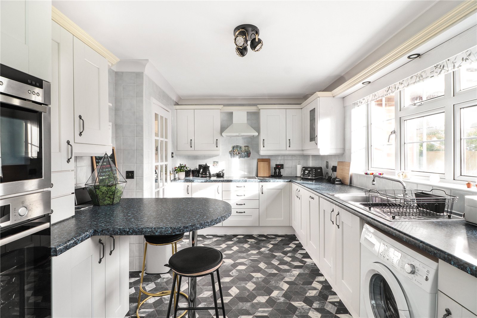 Kitchen 14'10" x 9'5" (4.52m x 2.87m). Double glazed Georgian style window to rear. Double glazed door to side. New laid vinyl flooring. Plain coved ceiling. Radiator. Fitted wall and base units with breakfast bar. One and a half bowl sink and drainer unit with mixer taps. Local tiling. Bosch stainless steel oven. Neff stainless steel grill and hob. Neff filter hood. Bosch washing machine (negotiable) Bosch fridge/freezer (negotiable). Newly installed central heating boiler and Hive system.
