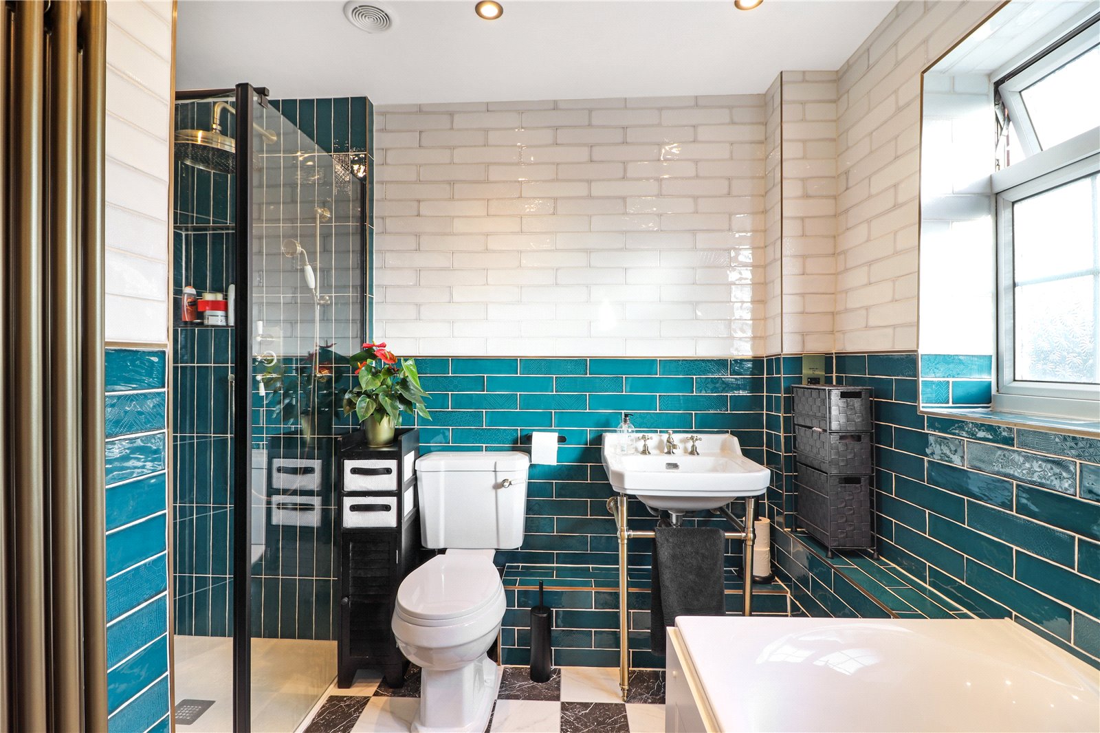 Family Bathroom Double glazed frosted window to rear. Tiled flooring. Plain coved ceiling. Downlighters. Upright replacement period style radiator. Panelled bath with antique style mixer taps and shower attachment. Low level wc. Wash hand basin. Walk in shower. Fully tiled. Shaver point.
