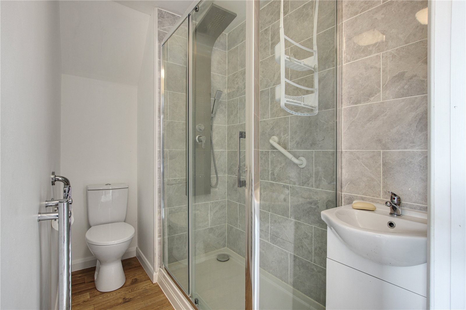 On the first floor there is the master bedroom and two additional bedrooms, one with large picture window overlooking the rear garden with ensuite shower room/WC and wash basin, family shower room/WC.