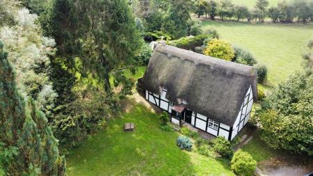 A TWO DOUBLE BEDROOM DETACHED THATCHED BLACK AND WHITE GRADE II LISTED COTTAGE with AMPLE PARKING and NUMEROUS OUTBUILDINGS, set within APPROXIMATELY 1.5 ACRES BACKING ONTO OPEN FARMLAND with a LOVELY OUTLOOK TO THE REAR, situated in a VILLAGE SETTING.